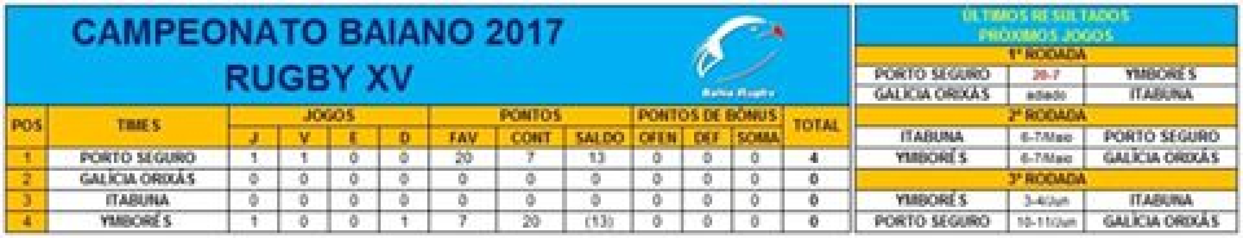 O Ymborés tenta recuperar pontos no campeonato nesta disputa com o Orixás (de Salvador), campeões do Campeonato Baiano de 2016. A disputa da segunda rodada do Baiano de XV é organizado pela Federação de Rugby da Bahia. Na fase atual, o Porto seguro se encontra liderando posição no campeonato com 4 pontos.